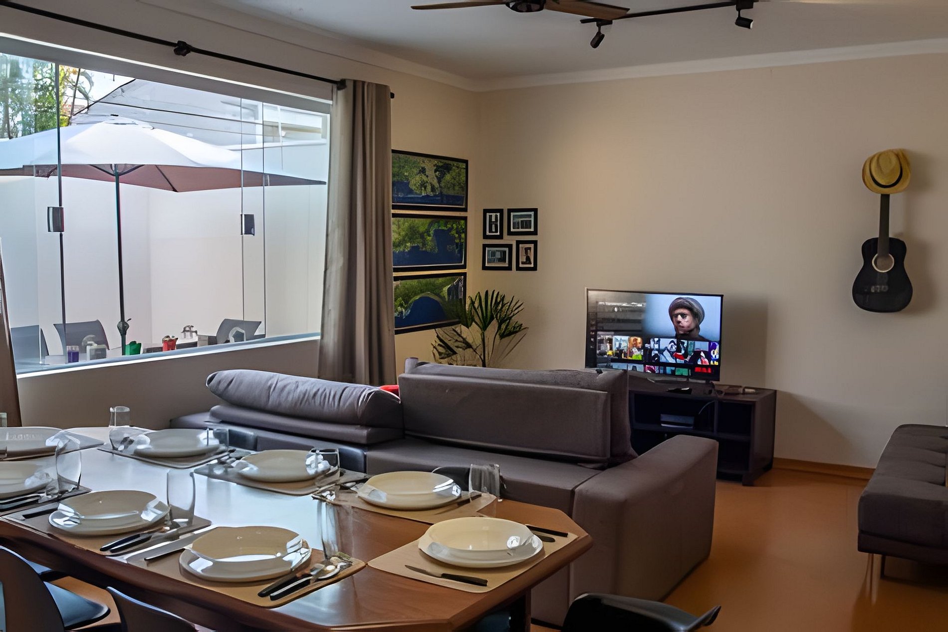 Todos os quartos possuem ar condicionado e ventilador de teto.