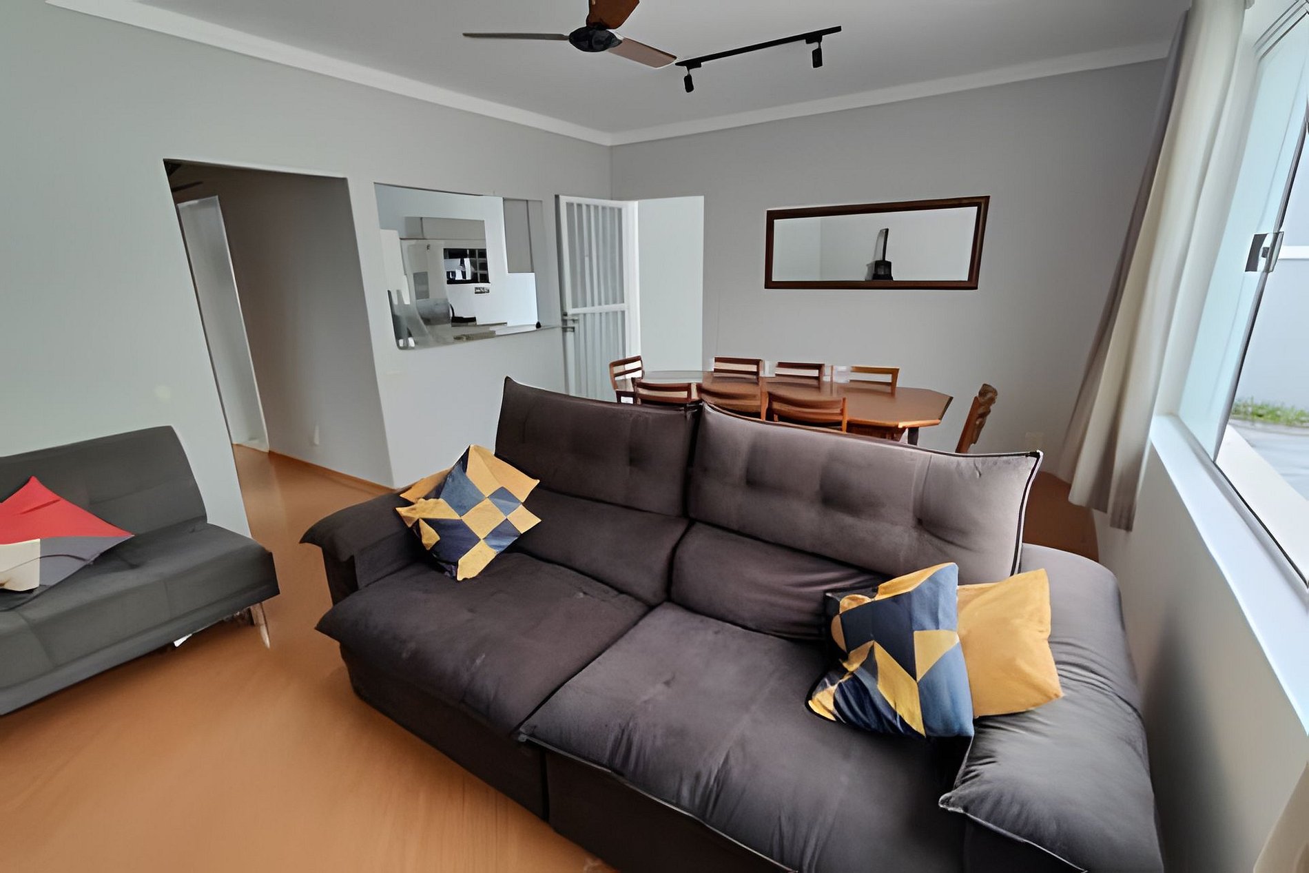 Casa no melhor bairro residencial de Aparecida, 1.600 m do Santuário. 4 quartos, sendo 2 suítes. Ar cond. e ventilado em todos os quartos Cozinha completa utensílios necessários. Garagem para até 2 carros, sendo uma vaga coberta Fornecemos roupas de cama e banho, travesseiros e cobertores Atenção: Por segurança, o acesso ao imóvel é feito por sistema digital. É OBRIGATÓRIO realizar um cadastro prévio com documento, selfie e alguns dados pessoais. A senha de acesso só é liberada após o registro completo.Sem o cadastro, NÃO PERMITIMOS A ENTRADA NO IMÓVEL e a reserva será cancelada com ônus, conforme regras da plataforma.